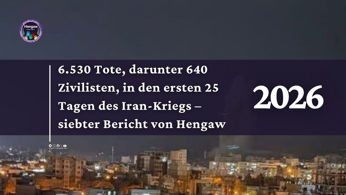 Während der Krieg zwischen den Vereinigten Staaten, Israel und der Islamischen Republik Iran in seinen 25. Tag geht, veröffentlicht die Hengaw-Organisation für Menschenrechte ihren siebten Bericht und äußert ernsthafte Besorgnis über die steigende Zahl ziviler Opfer.