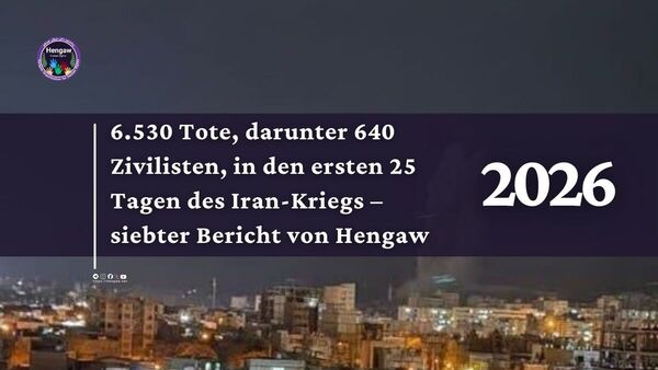 6.530 Tote, darunter 640 Zivilisten, in den ersten 25 Tagen des Iran-Kriegs – siebter Bericht von Hengaw