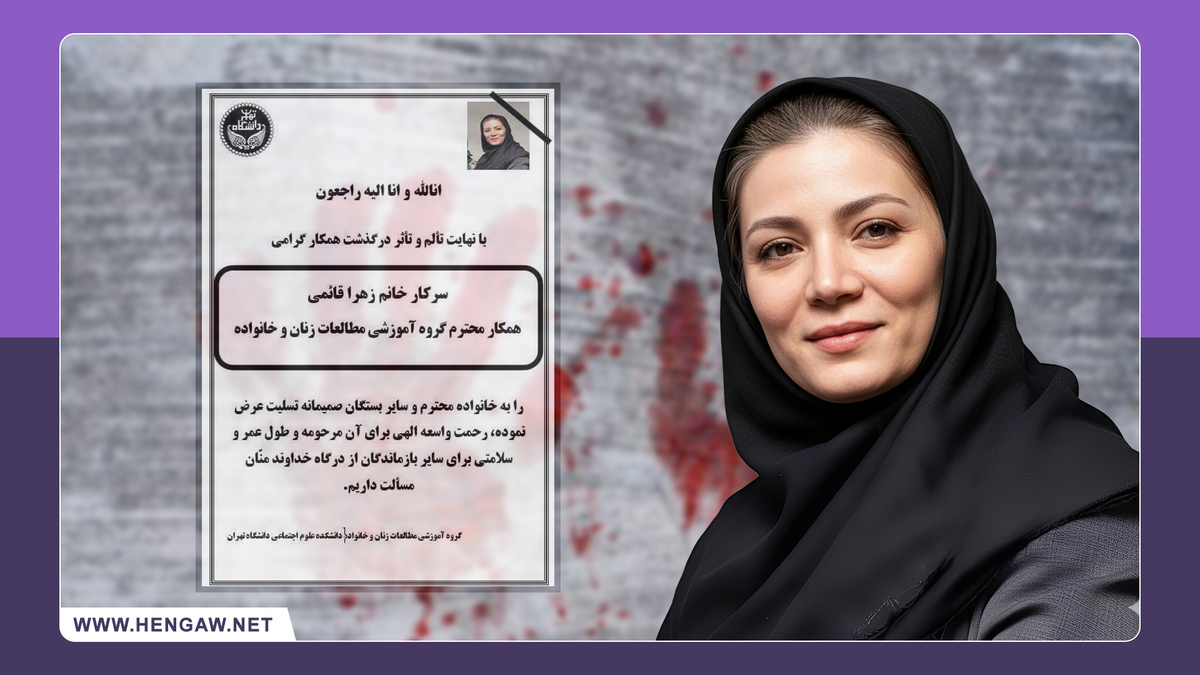 According to information obtained by Hengaw Organization for Human Rights, Ghaemi, a Tehran-based academic and member of the University of Tehran’s Women and Family Studies Department, was killed by her husband on Saturday, October 11, 2025.