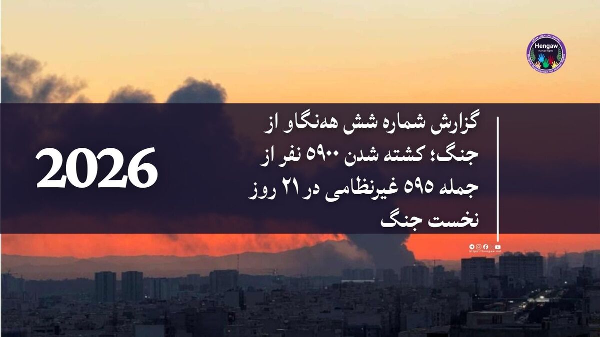 همزمان با بیست و یکمین روز از جنگ میان ایالات متحده آمریکا، اسرائیل و جمهوری اسلامی ایران، سازمان حقوق بشری ههنگاو ضمن ابراز نگرانی شدید از افزایش شمار قربانیان غیرنظامی تازهترین گزارش خود را منتشر میکند. بر اساس آمار تایید شده توسط مرکز اسناد ههنگاو، تا پایان روز بیست و یکم جنگ دستکم ۵۹۰۰ نفر جان خود را از دست دادهاند که ۱۰٪ آنها شامل ۵۹۵ شهروند غیرنظامی و پنج هزار و ۳۰۵ تن از نظامیان ایران است.