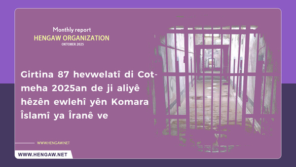 Pêka amar û belgeyên Hengawê, di heyama Cotmeha 2025an de, aliyê kêm 37 welatiyên Kurd ji aliyê saziyên hikûmetî yên Komara Îslamî ya Îranê ve hatine girtin ku ev amare beranberî 42.5 ji sedî ji tevahiya hevwelatiyên hatinî girtin li seranserê Îranê di heyama Cotmeha 2025an de bûye. Herwisa di meha borî de herî kêm 16 hevwelatiyên Belûç (%18.5) hatine girtin.