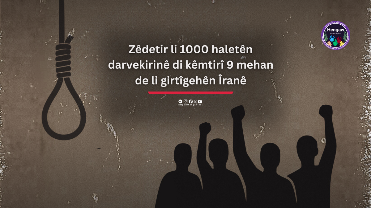 Saziya mafê mirovî ya Hengawê derheq zêdebûna pêla darvekirinan û zêdebûna maşîna kuştinê li Îranê huşdariyê dide û ji civaka medenî ya Îranî û cîhanê re daxwaz dike ku tevî şermezarkirina cidî ya van darvekirinan, hizra danana tedbîran ji bo pêşîlêgirtinê ji darvekirinan li Îranê bikin.