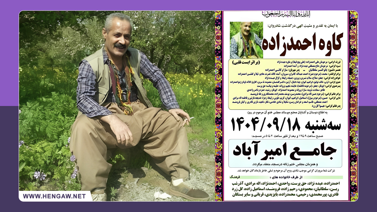 بە پێی ڕاپۆرتی گەیشتوو بە رێکخراوی مافی مرۆڤی هەنگاو، ڕۆژی یەکشەممە ١٦ی سەرماوەزی ٢٧٢٥ (٧ی دیسەمبەری ٢٠٢٥)، کاوە ئەحمەدزادە، هاووڵاتیی تەمەن ٥٤ ساڵ و خەڵکی بۆکان و باوکی یەک منداڵ، بە دوای تووشبوون بە پەتای ئەنفلۆنزا و بێبەشبوون لە دەستپێڕاگەیشتن بە خزمەتگوزاریی دەرمانی پێویست، لە گرتووخانەی ناوەندیی بۆکان گیانی لەدەست دا.