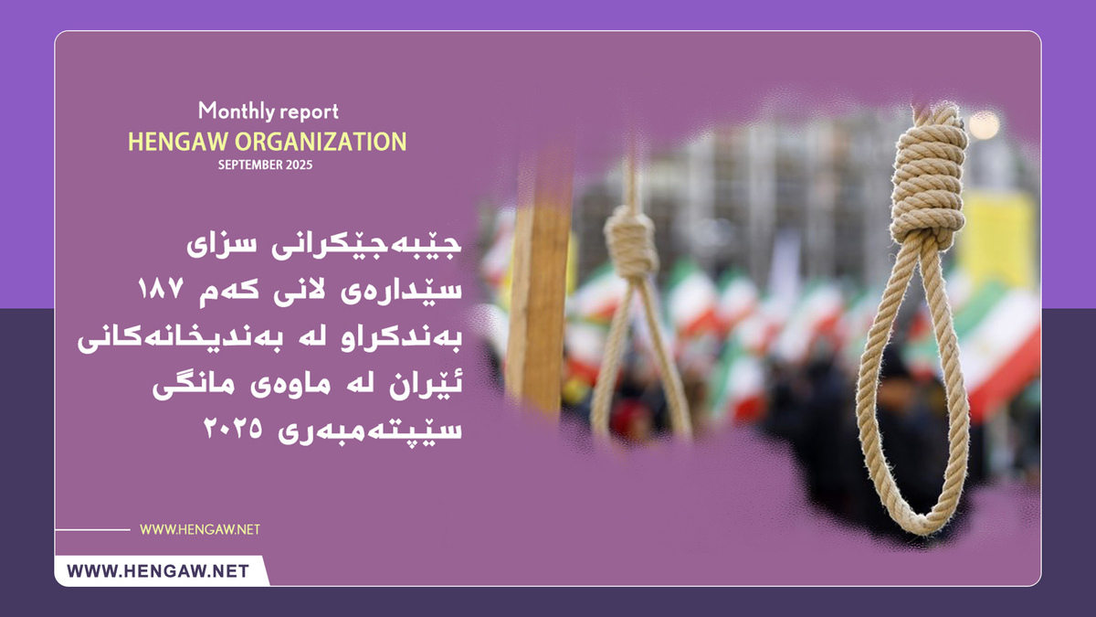 بە پشتبەستن بە ئامارە تۆمارکراوەکان لە ناوەندی ئامار و بەڵگەنامەکانی ڕێکخراوی مافی مرۆڤی هەنگاو، لە ماوەی مانگی سێپتەمبەری ٢٠٢٥دا سزای سێدارەی لانی کەم ۱۸۷ بەندکراو لە بەندیخانەکانی ئێراندا جێبەجێ کراوە. شایەنی باسە کە ناسنامەی ۱۸۱ بەندکراو بە تەواوی بۆ هەنگاو ئاشکرا کراوە و بۆ ناسنامەی ۶ بەندکراوی دیکە بەدواداچوون دەکرێت.